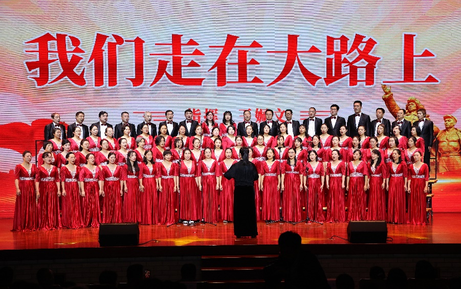 演出在mk手机注册工会教师合唱团的经典保留作品《没有共产党就没有新中国》歌声中拉开序幕。教师们意气风发,用优美激昂的歌声唱出对党的热爱与感恩、对革命事业伟大成就的深情赞颂。