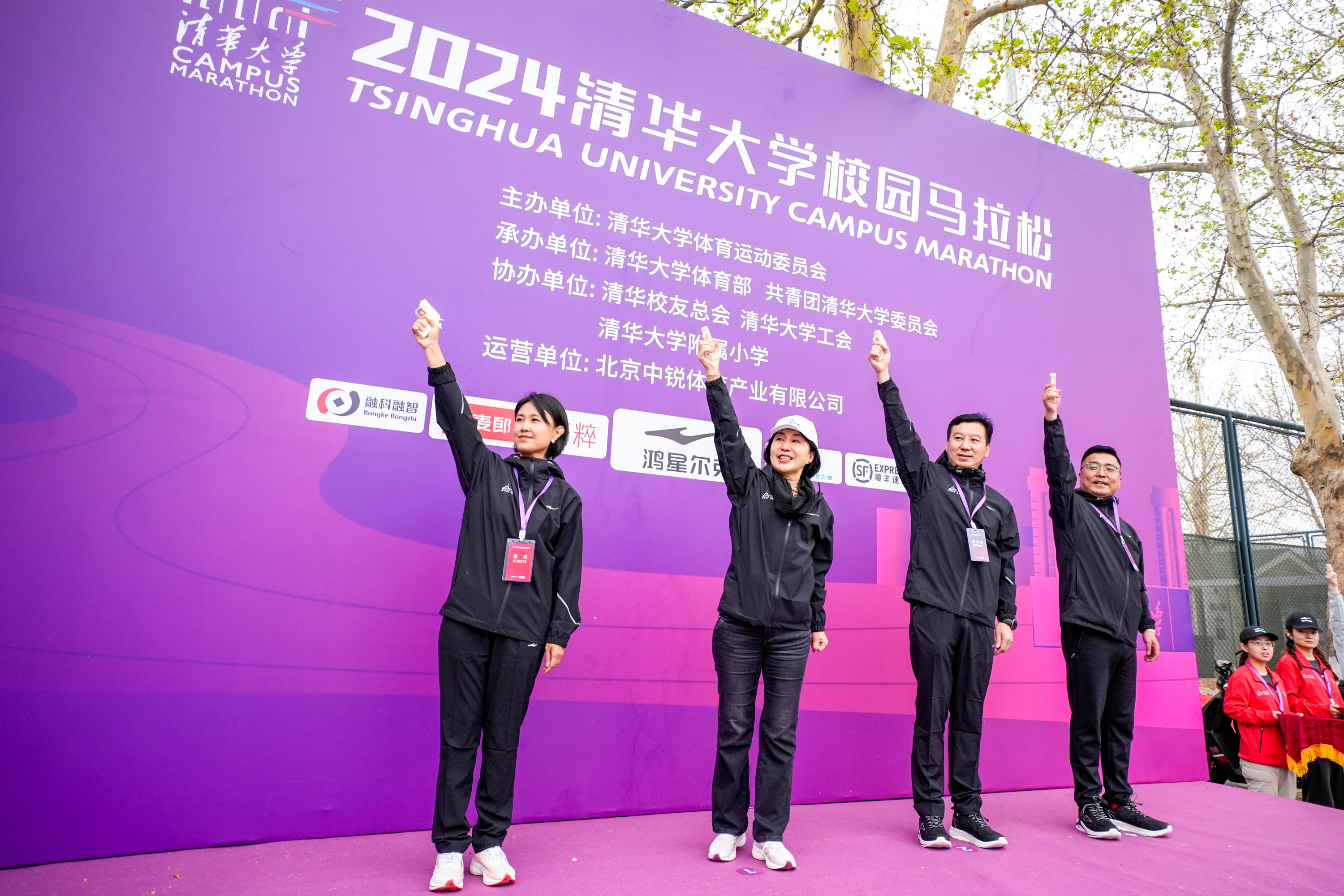 刘晓磊、窦桂梅、马新东、邢爱国(从左至右)为比赛鸣枪