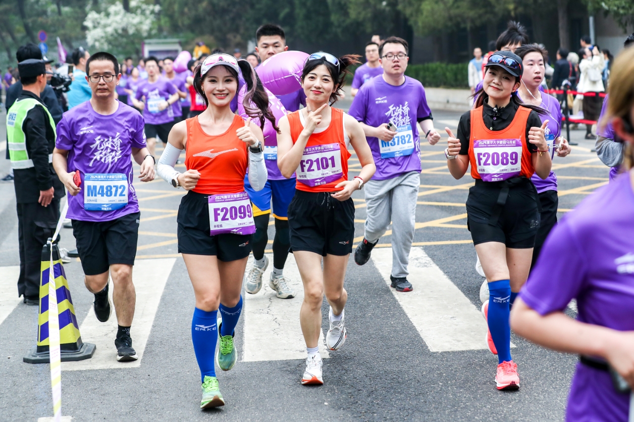 春风轻抚清华园,垂柳轻摆,花香四溢,古建筑在绿荫掩映下更显庄重,湖光潋滟映照着一位位跑者靓丽的身影,每次奔跑都挥洒着汗水,每次鼓励都坚定着信念,越跑越拼,也越跑越远。