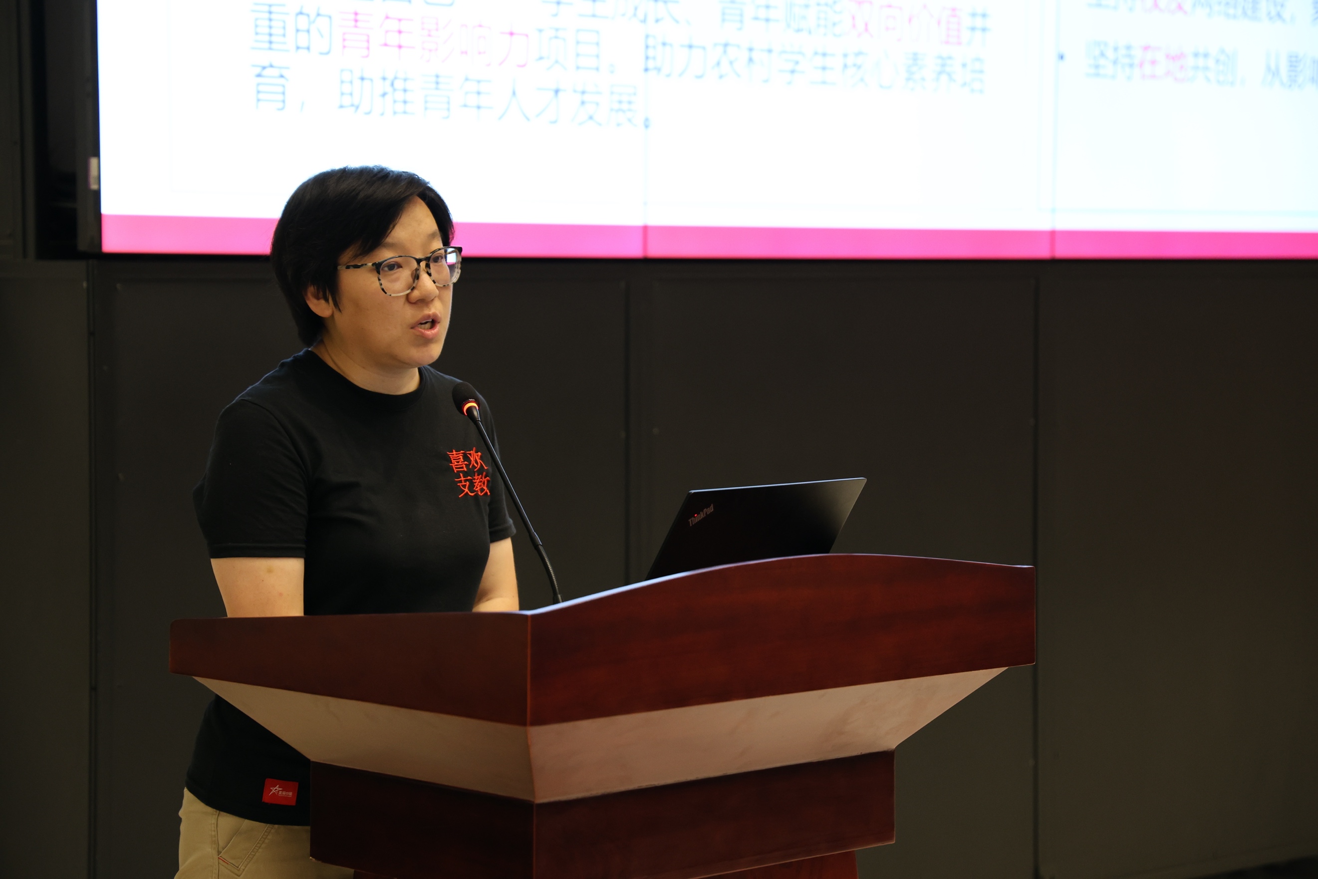 美丽中国支教项目秘书长李薇薇结合支教经历,介绍了美丽中国支教活动情况和发展蓝图。“育人,遇自己”,真诚而又有力的话语感染了在场所有人,也道出了志愿者赠人玫瑰、手有余香的心境。