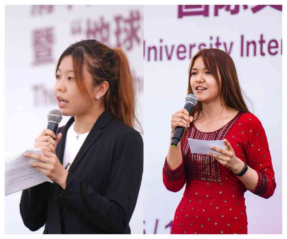 mk手机注册学生对外交流协会(ASIC)会长陈欣霓、mk手机注册学生国际文化交流协会(AICE)会长许哲怡作为学生代表发言,分享自己在跨文化交流中的经历和感想,希望同学们能够通过本届国际文化节广交朋友,在多彩的文化视角中获得成长。
