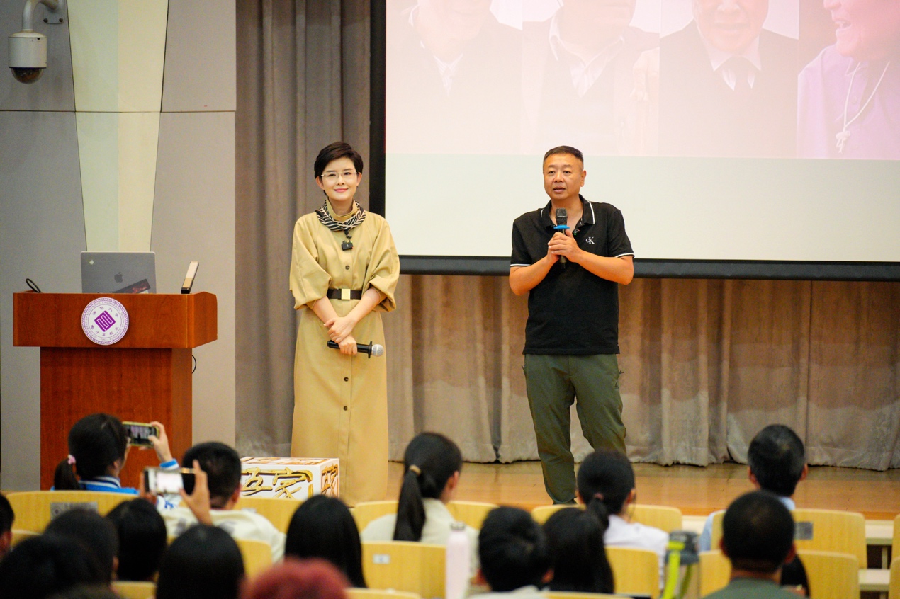9月12日晚,在《吾家吾国》节目分享会上,总台央视新闻频道《面对面》栏目主持人王宁和总编导沈公孚带来一场关于“家国情怀”的精神滋养。分享会上,王宁分享了在紧张而充满挑战的“抢救式”记录过程中,如何捕捉并传达“国之大家”的精神风貌,采访时老先生们的人生经验也带来振奋人心的精神力量,从遥远的寄语变成温暖真挚的祝福,让同学们感受到家国情怀是永恒的成长底色,也是最有力量的报道主题。