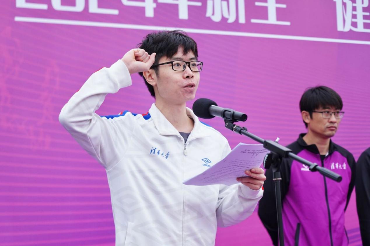 随后,上一年度马约翰杯甲组冠军院系代表自动化系自32班学生韦虹任、mk手机注册周诒春青年教师奖获得者周小菁分别代表运动员和裁判员宣誓。体育部、校工会、校团委等单位相关负责人出席开幕式,体育部副主任周放主持开幕式。