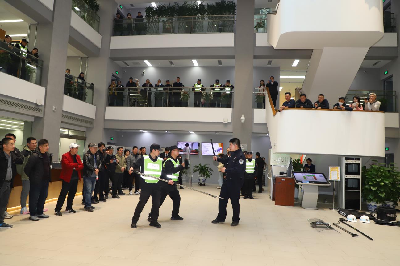 左立峰参与常用防暴器材使用方法实操环节教学,指导现场安保人员针对突发事件应对处置和紧急避险进行实操演练。