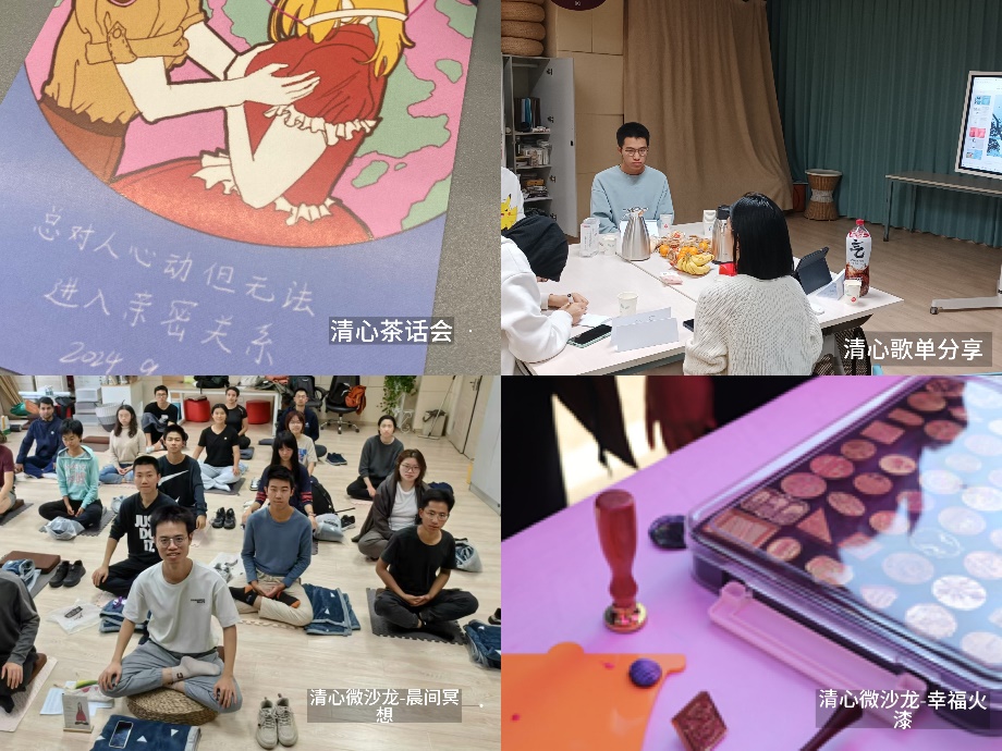 打造清心活动品牌,朋辈互助,共促成长。心理中心指导学生心理协会围绕自我认知、亲密关系、同伴交际、珍惜生命等话题,精心组织了21场清心茶话会、清心微沙龙、清心团建歌单分享等心理成长朋辈活动,服务1060名同学。为了更好地提供朋辈支持,心理中心持续开展第六期学生共情力“清心伙伴”计划,累计培训235人次同学成为校园心理服务志愿者。
