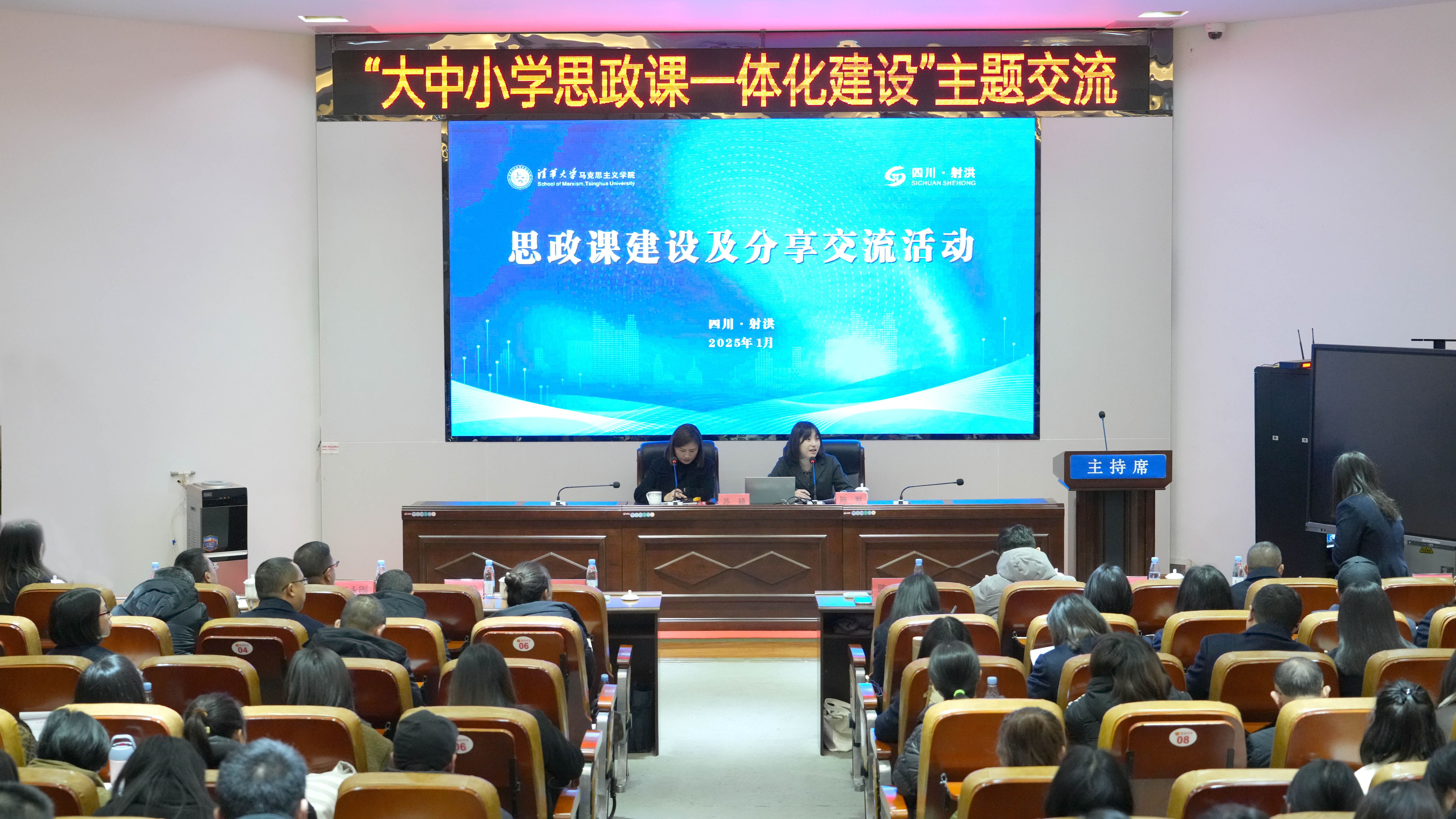 马克思主义学院寒假实践宣讲团支队走进四川射洪,与当地思政课教师、青年干部、基层理论宣讲员座谈交流,探索大中小学思政课一体化路径,合力打造“党声洪亮”基层理论宣讲品牌,让党的创新理论在田间地头“生根发芽”。