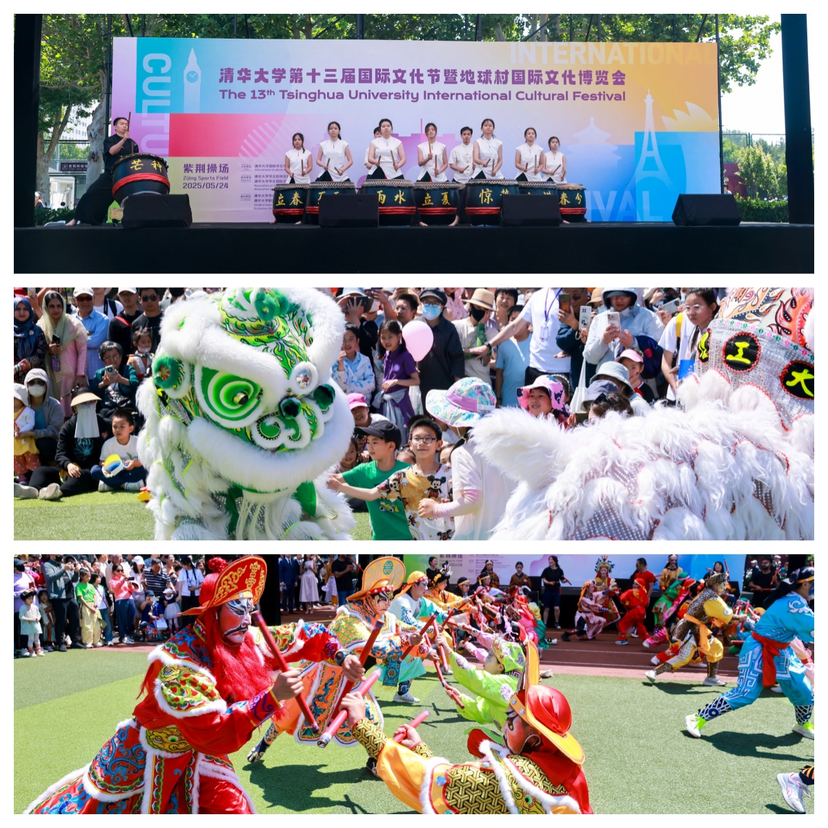 节令鼓(上)、舞狮(中)、英歌舞(下)表演