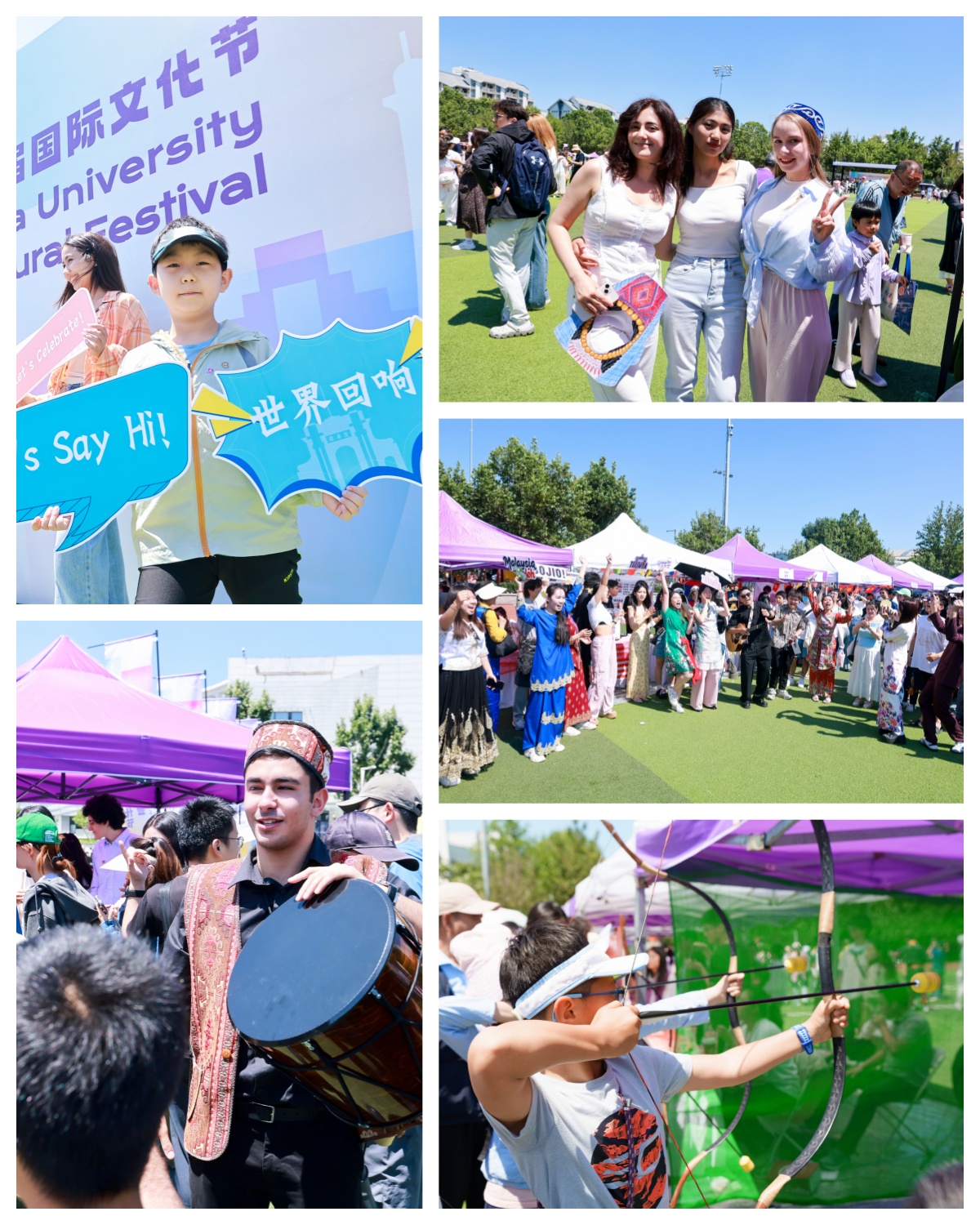 来自36个国家的60个特色展棚如彩带般环绕操场展开,巴西的肉桂甜米饭氤氲着热带雨林的甜郁,乌兹别克斯坦的手抓饭在铁锅里迸溅出丝绸之路的星火,马来西亚的斑斓蛋糕与椰浆饭正用南洋艳阳的色彩装点餐盘,口渴休憩时还有来自哥伦比亚和古巴的特色咖啡……中国街上,笛箫、古琴、礼射、中医等特色项目吸引着师生纷纷体验。