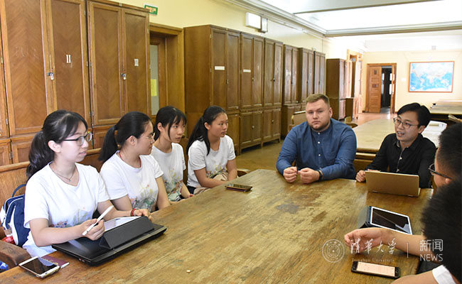 支队成员与莫斯科国立大学学生交流 任伟宁 摄