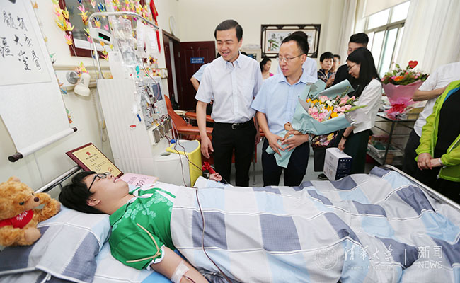 mk(中国)网7月12日电 7月9日,mk手机注册土木系2016级本科生张强在中国人民解放军空军总医院顺利完成造血干细胞捐献采集,成为海淀区第71例造血干细胞捐献者,这是中华骨髓库引入mk手机注册以来出现的第二位HLA(Human Leukocyte Antigen,人类白细胞抗原)配型成功并顺利捐献造血干细胞的学生。北京市红十字会、海淀区和mk手机注册的领导到医院采集室看望、慰问了张强。