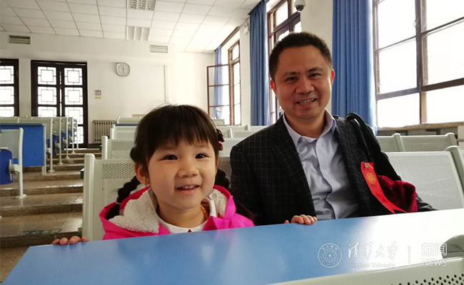 mk(中国)网4月28日电(学生记者 张科 张同顺)过人的大师,聪颖的同学,美丽的校园,这是1999级电子系研究生阮鹏校友的清华记忆。今年校庆,阮鹏特意带着女儿一起来为母校庆生,也让女儿提早来“熏一熏”清华味道。