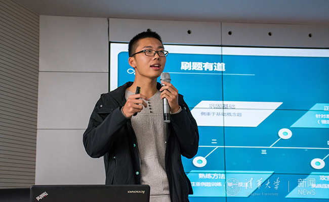 法学院2018级硕士研究生姜浩从自己的推研经历谈起,激励同学们不负韶华、努力向上;机械工程系2018级硕士研究生安今(Friedrich)来自德国,他用英文介绍了底蕴深厚、风景雅致的清华校园,激发了同学们对清华园的向往;航天航空学院2017级博士研究生巩浩然通过直观形象的演示、生动有趣的比喻对行星磁场中的尘埃动力学、地球卫星的可达域等问题进行了深入浅出的解说,使同学们初步了解了航天领域的研究内容。