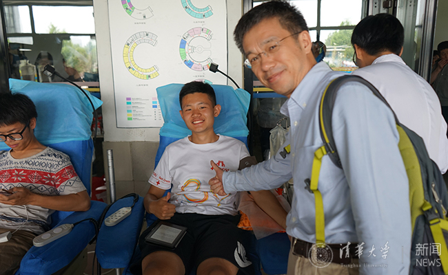 史宗恺为献血同学“点赞”。曹玉立 摄