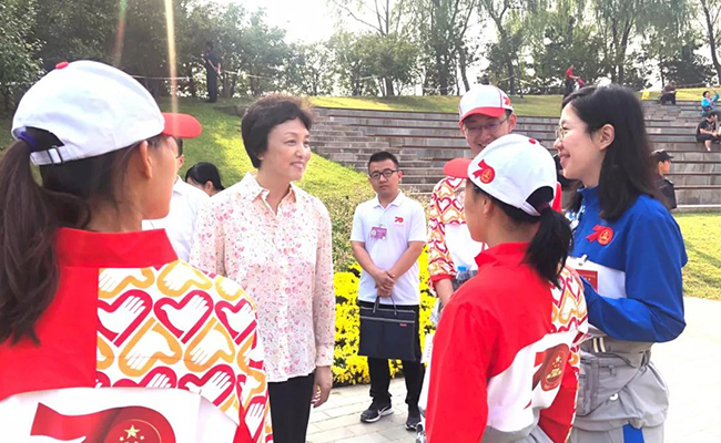 10月2日上午,校党委书记陈旭来到海淀公园和北京展览馆,亲切看望服务于国庆游园活动和“伟大历程 辉煌成就——庆祝中华人民共和国成立70周年大型成就展”活动的清华志愿者,感谢同学们对志愿工作的全心付出,亲切询问了志愿者服务与保障情况,并与时段内轮岗休息的志愿者座谈交流。党办主任、校办主任丛振涛,学生部部长白本锋,校团委书记王前等一同前往看望。