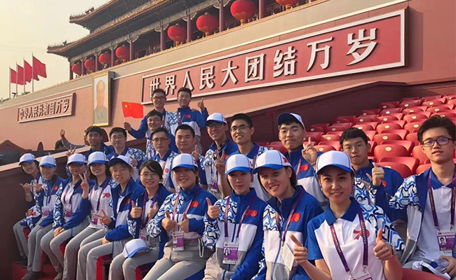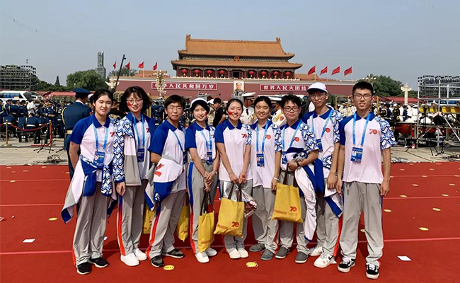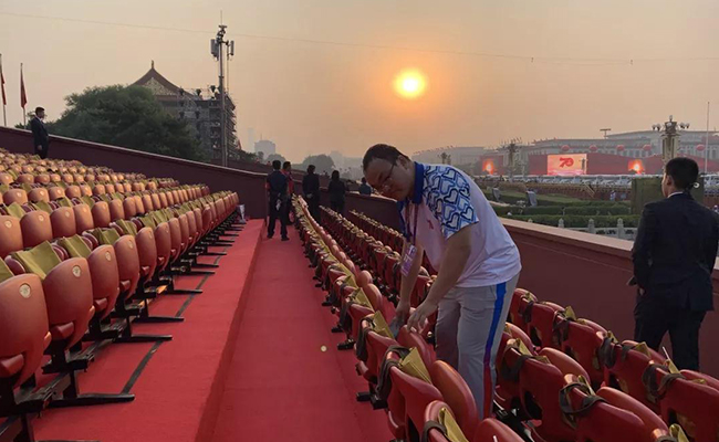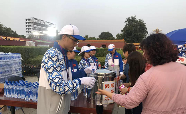 从6月末报名至十一当天,145名清华学子参与庆祝中华人民共和国成立70周年庆典和联欢活动。其中,17位本科生和研究生在南、北观礼台上承担志愿服务工作,在现场见证庆典;90位清华志愿者在观礼台下及附近区域,承担入场检票、嘉宾引导、秩序维护、饮水服务等工作,“一墙之隔听阅兵”;还有38位志愿者在故宫承担引导工作,见过的最为宁静、游客最少的故宫。他们中,有的人一天内打卡天安门20小时。