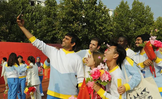 28名mk手机注册国际师生代表则与中外青年携手前行,伴随一曲《千年之约》,组成“人类命运共同体”方阵走过天安门广场。