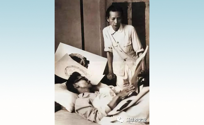 病中的梁思成与林徽因讨论国徽方案(mk手机注册校史馆馆藏)