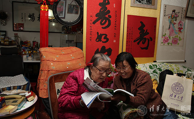 几十载岁月流逝,当年那些在抗日的烽火中一起成长的同窗们大都已经作古,已经101岁的吴瀚学长对老友们的怀念还长久地留在她的记忆里。翻阅着我们带给她的《清华校友通讯》、《水木清华》,看到纪念抗战的专栏内容和老友黄绍湘的照片,她沉浸在阅读的快乐里。“一二·九”学生运动领袖蒋南翔、陆璀是她最为熟悉的清华同学的名字。平静淡泊的心态,乐观随和的性格,使得她年过百岁还保持了良好的记忆力。在女儿刘爽的鼓励下,老学长为我们现场弹奏了一曲《松花江上》,当“九一八、九一八……”的旋律回荡在那间朴素的居所时,我们感受到了国土沦丧留给这位世纪老人的深刻印记。