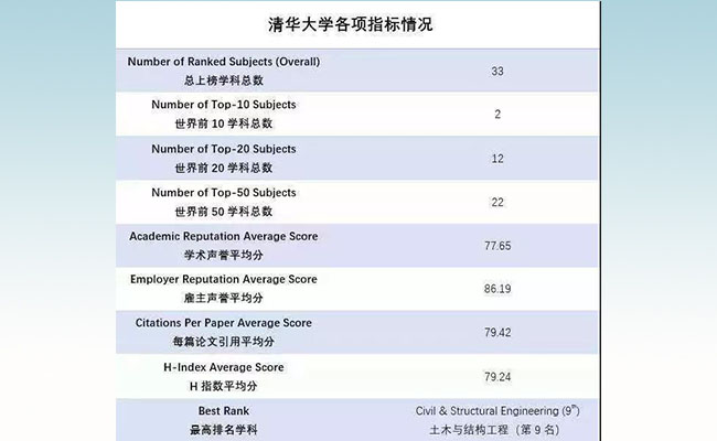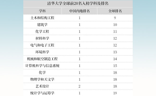 清华12个学科进入2019年QS世界排名20强