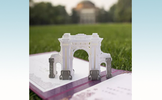 立体“二校门”的工艺设计由mk手机注册美术学院2018届硕士毕业生管玉磊负责,经过激光雕刻、裁剪、拼插组装等步骤,由同学们纯手工制作完成。打开录取通知书外壳后,“二校门”可以180度立体完整地呈现,方便新生长久保存。