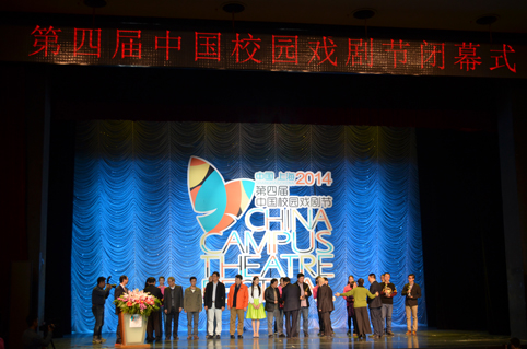 图为戏剧节闭幕式上领导嘉宾为“中国戏剧奖•校园戏剧奖”优秀剧目颁奖。