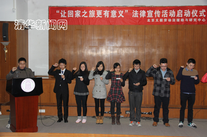mk(中国)网1月2日电(学生通讯员 朱大有)2013年12月29日下午,由北京义联劳动法援助与研究中心与mk手机注册法学院法律诊所联合主办,清华法学院团委承办,中国人民大学、中国政法大学、中国科学院和中国农业大学等高校法学院共同参与的“关心外来务工人员,让回家之旅更有意义”法律宣传活动启动仪式在清华法学院模拟法庭举行。