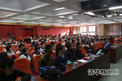 首先讲解的志愿者是来自五道口金融学院的研究生舒澎,他以银行存款为例,生动活泼的介绍了金融这个与大家日常生活和国家经济发展密切相关的专业。第二个出场的志愿者是来自航空航天学院国防生李苗,他以最近很火的“嫦娥三号”为例,富有激情地讲解了航空航天专业不是培养飞行员、宇航员和空姐,而是设计飞行器。他以自身的国防生经历告诫高中生要坚持,要自信,要学会在集体中成长。接下来,来自计算机系的志愿者田天,诙谐幽默地讲到计算机专业不是修电脑,不是当网管,并且以他研究方向详细的介绍了计算机专业的优势。随后,来自电机系志愿者陈冠华介绍了电气工程及自动化专业不是“爬电线杆”,而是一门研究电能产生、传输、利用的传统工科。他以自身从农村走出来的经历告诉高中生要懂得珍惜时间,不随波逐流,专注做好自己可以把握的事情。最后讲解的志愿者是来自化学系的冯元宁。他将化学专业比作做菜,风趣地介绍了化学专业的方方面面,博得了全场的一次又一次掌声。