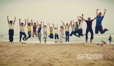 图为营员穿越深圳东部海滨之后欢呼雀跃的合影。