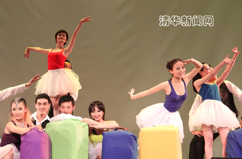 其中,多种艺术形式巧妙结合、艺术团多支队伍密切合作的《舞·乐》给观众带来了耳目一新的感觉;85岁的46级电机系校友岑乐驷携夫人用他们创作的歌曲《中国梦,我的梦》为母校献礼,令人感动;原创舞蹈《紫荆魂》用忘情而富有张力的表演,表现了清华学子坚守自我、奋力向前的品性,如同四月天奋力绽放的紫荆花般清丽而顽强;话剧队带来的诗朗诵《我的中国》讲述了一个家庭中三代清华人为了祖国而奉献青春的动人故事,令人感慨万千、潸然泪下。全场高潮迭起,洋溢着校庆的欢乐气氛。