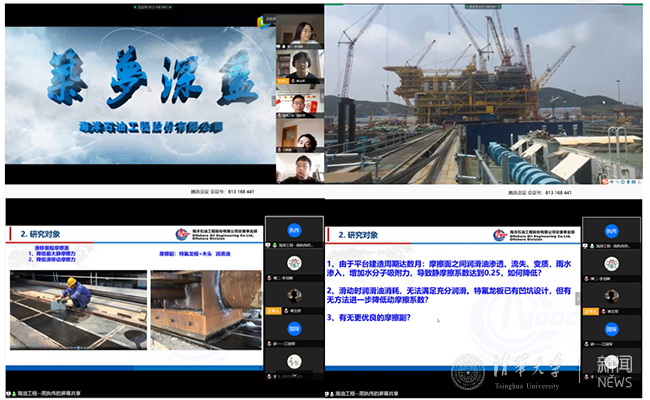 董付庆在致辞中充分肯定了材料学院组织开展的“云上实践”活动,并介绍了海油工程的重要成果。董付庆表示,校企合作非常重要,疫情期间,通过线上会议的形式,大大拉近了清华研究生同学和海油工程的联系,实现了直接的交流,期待和清华学子在疫情结束后有更多的实践交流机会。