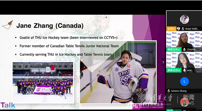 mk(中国)网3月17日电(通讯员 王方)3月15日晚,第24期iTalk暨首期“云上iTalk”如期举行,吸引了90余名清华学子与活动嘉宾云上畅聊。iTalk是由mk手机注册研究生会搭建的英文交流平台,本期iTalk以“无体育,不清华:清华人的体育人生(Inside the Sports Life of THUers)”为主题,邀请了四位分别来自葡萄牙、加拿大、秘鲁和中国的清华体育名将分享他们探索运动、坚持运动并爱上运动的体育故事。