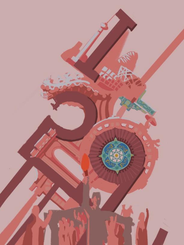 美术学院2019级本科生苟成林和建筑学院2017级本科生张晨玥创作的插画同样在本次展出中广受好评。插画融合了各种元素,生动、巧妙地展现了“一二·九”精神的传承与发扬,激励着广大青年砥砺前行,为民族复兴贡献力量。