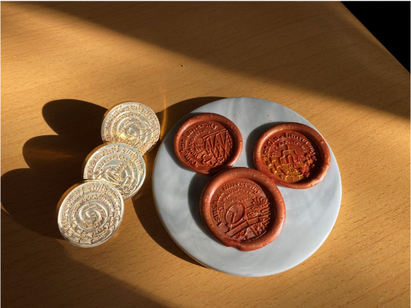 “火漆印章承载清华记忆”小组将二校门、新清华学堂、日晷等清华文化元素融入到了火漆印章中,带领大家回到了“从前的日色变得慢,车、马、邮件都慢”的旧时光。