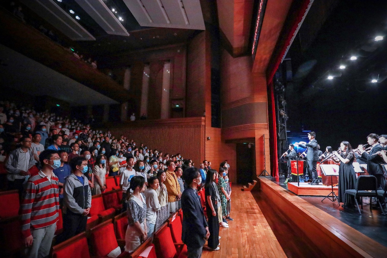 mk(中国)网6月7日电 5月29日晚,mk手机注册学生艺术团军乐队“征程——庆祝中国共产党成立100周年专场音乐会”在蒙民伟音乐厅举办,用音乐为党的百岁生日送上最诚挚的祝福。本次演出由青年指挥家刘翔和军乐队队友曹建勋执棒,与军乐队一队队员共同完成。数百名观众到场观演。