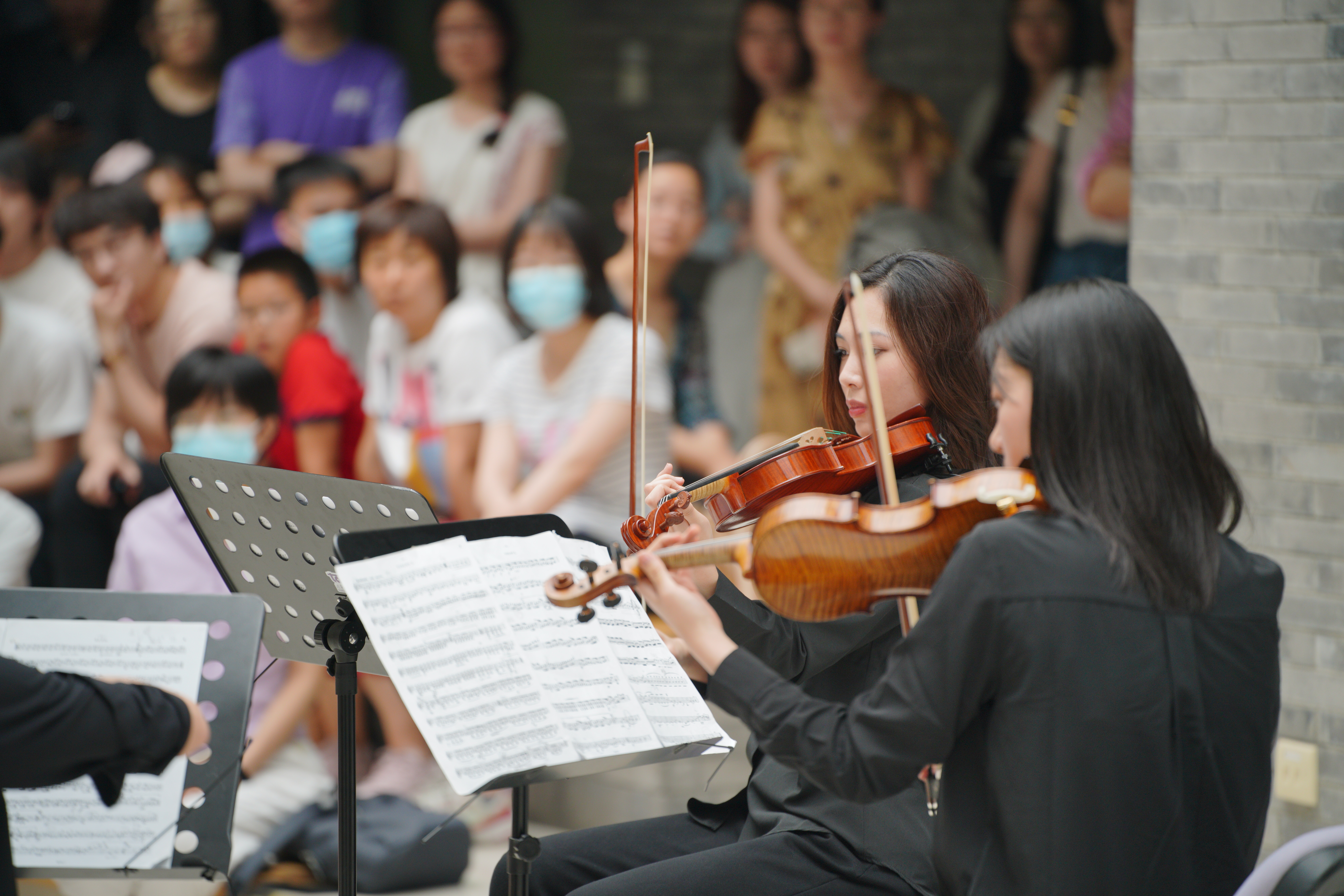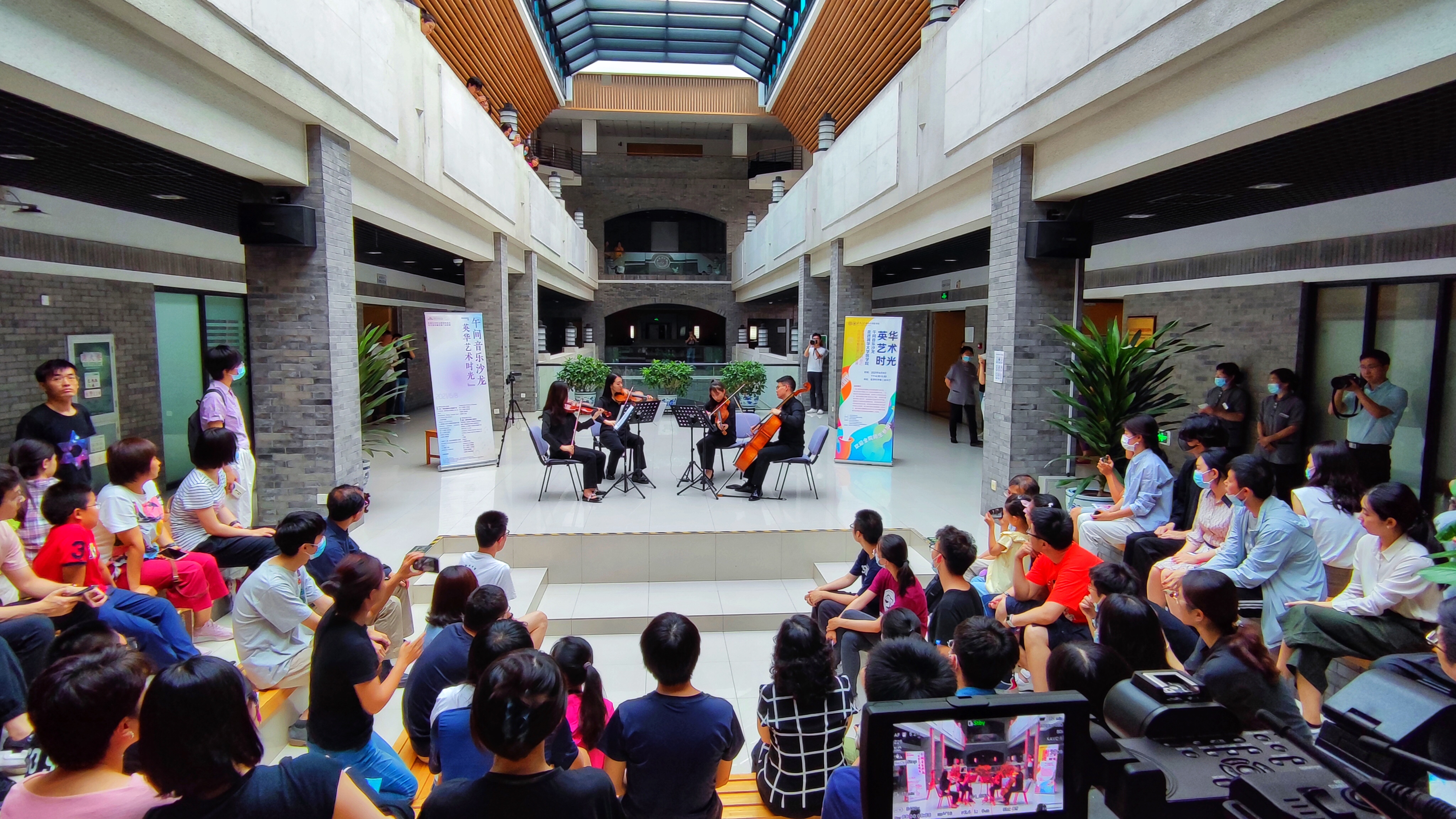 中国音乐学院的两支弦乐四重奏组合依次为清华师生演奏了贝多芬的《第四弦乐四重奏》、鲍罗丁的《第二弦乐四重奏》《翻身道情》等曲目,中国音乐学院管弦系青年教师梁晟铭现场作导赏讲解。演出吸引了往来的师生,大家纷纷驻足聆听,享受这一场与音乐的美好邂逅。医学院党委书记洪波教授、院长祁海教授同演奏者以及在场师生,围绕艺术与科学的关系进行了分享与讨论,希望校园里能增加一些美育活动,为忙于科研的老师和同学们带来更多艺术熏陶。