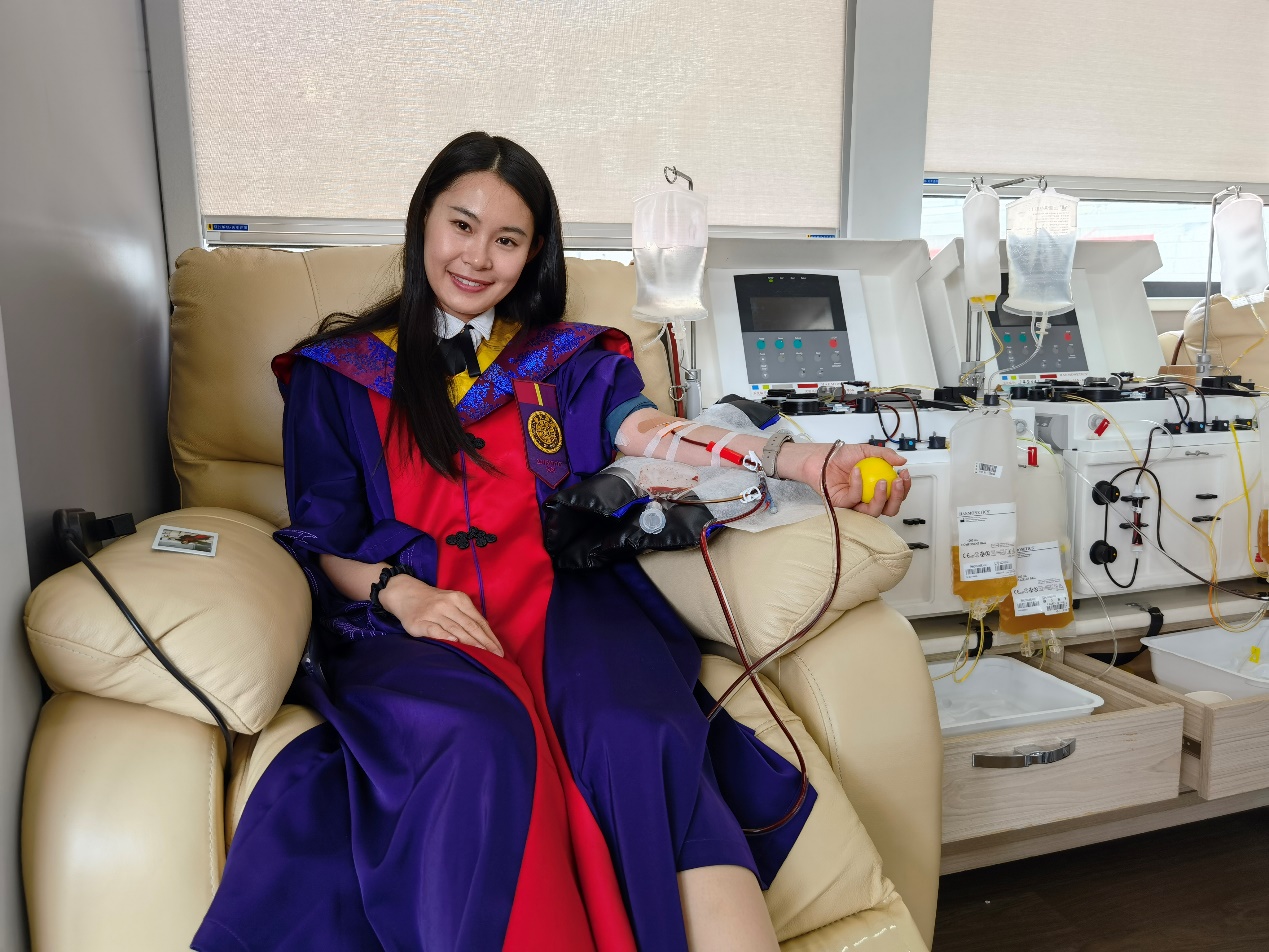航天航空学院博士毕业生贺茗身着学位服参与无偿献血,在她看来,无偿献血是最直接帮助他人的方式,她也希望通过参与这次“毕业纪·鲜红的旗帜”献血活动为自己在清华的十年求学时光留下一个美好的回忆。毕业后,她将进入到解放军某部工作,将自己的爱国情怀与专业技能投入到军队建设的工作中,扎根为党、为国、为军奉献的热土。
