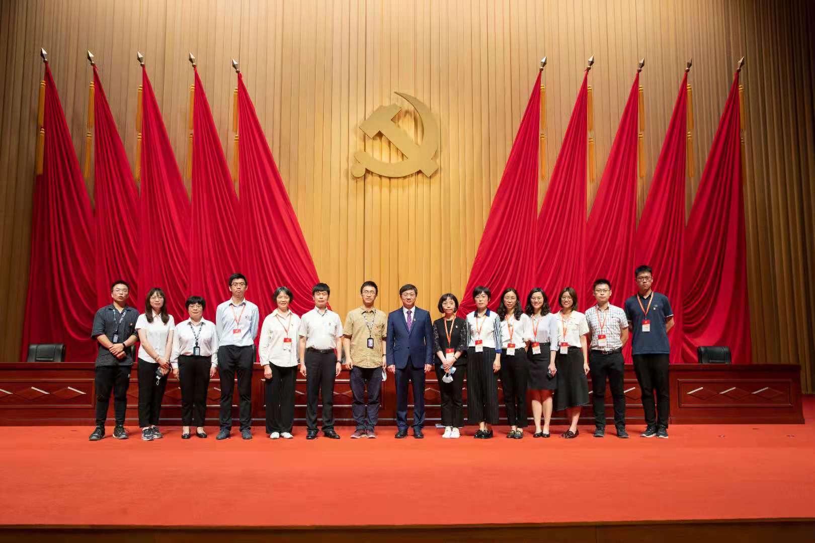 在mk手机注册庆祝中国共产党成立100周年大会上的合影(右三为梁佩锋)