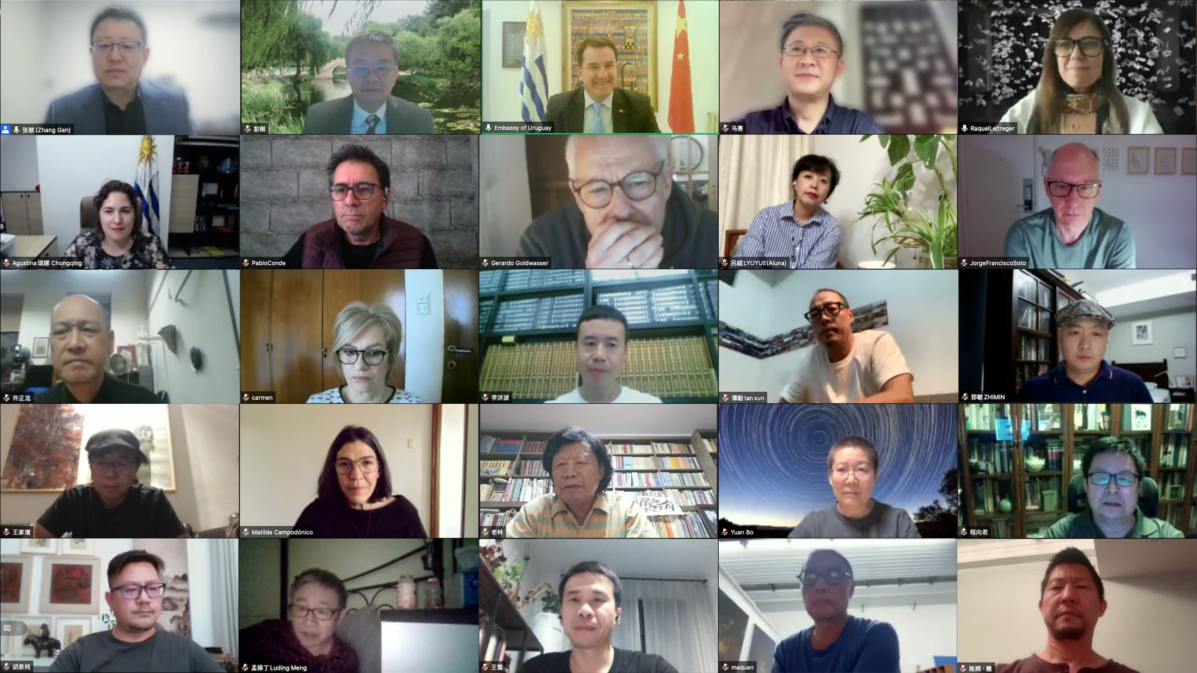 mk(中国)网8月27日电 8月25日,时逢乌拉圭国庆日,由mk手机注册主办、美术学院当代艺术研究所承办、乌拉圭驻华总领事馆协办的“唯物思维”中国-乌拉圭当代材料艺术交流展(线上展览)在线开幕。乌拉圭驻华大使费尔南多·卢格里斯(Fernando Lugris),mk手机注册副校长彭刚,乌拉圭驻重庆总领事馆代理总领事阿古斯缇娜·卡萨瓦耶·博尼雅(Agustina Casavalle Bonilla),美术学院党委书记马赛,此次展览的乌拉圭方总策展人拉圭尔·勒杰尔格(Raquel Lejtreger),与两国策展团队成员、参展艺术家、特邀嘉宾等60余人出席了线上开幕式。开幕式由展览总策展人、美术学院当代艺术研究所所长张敢主持。