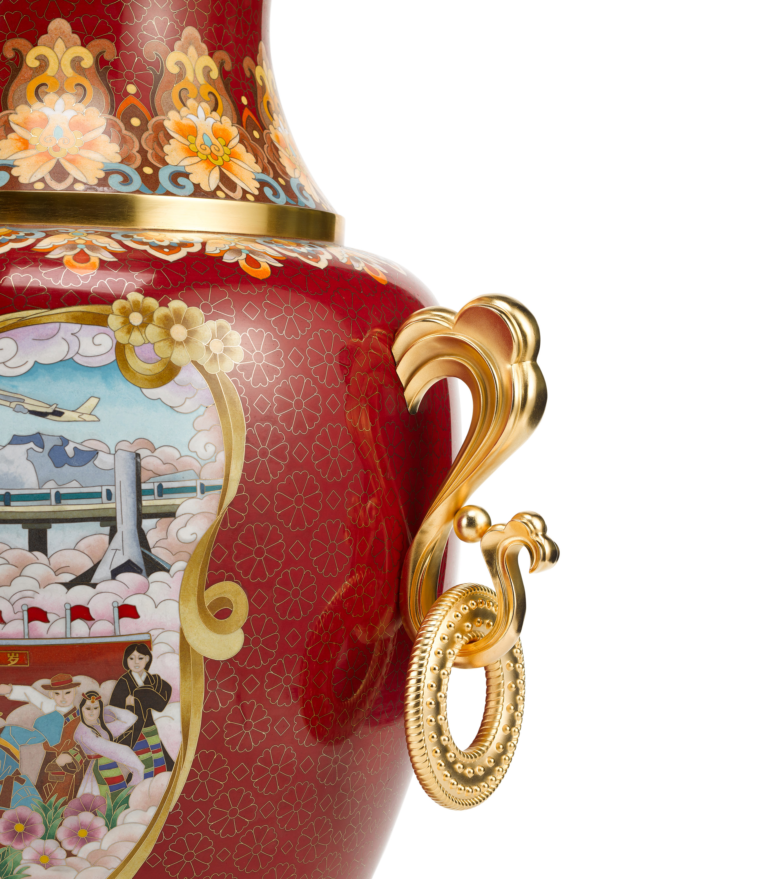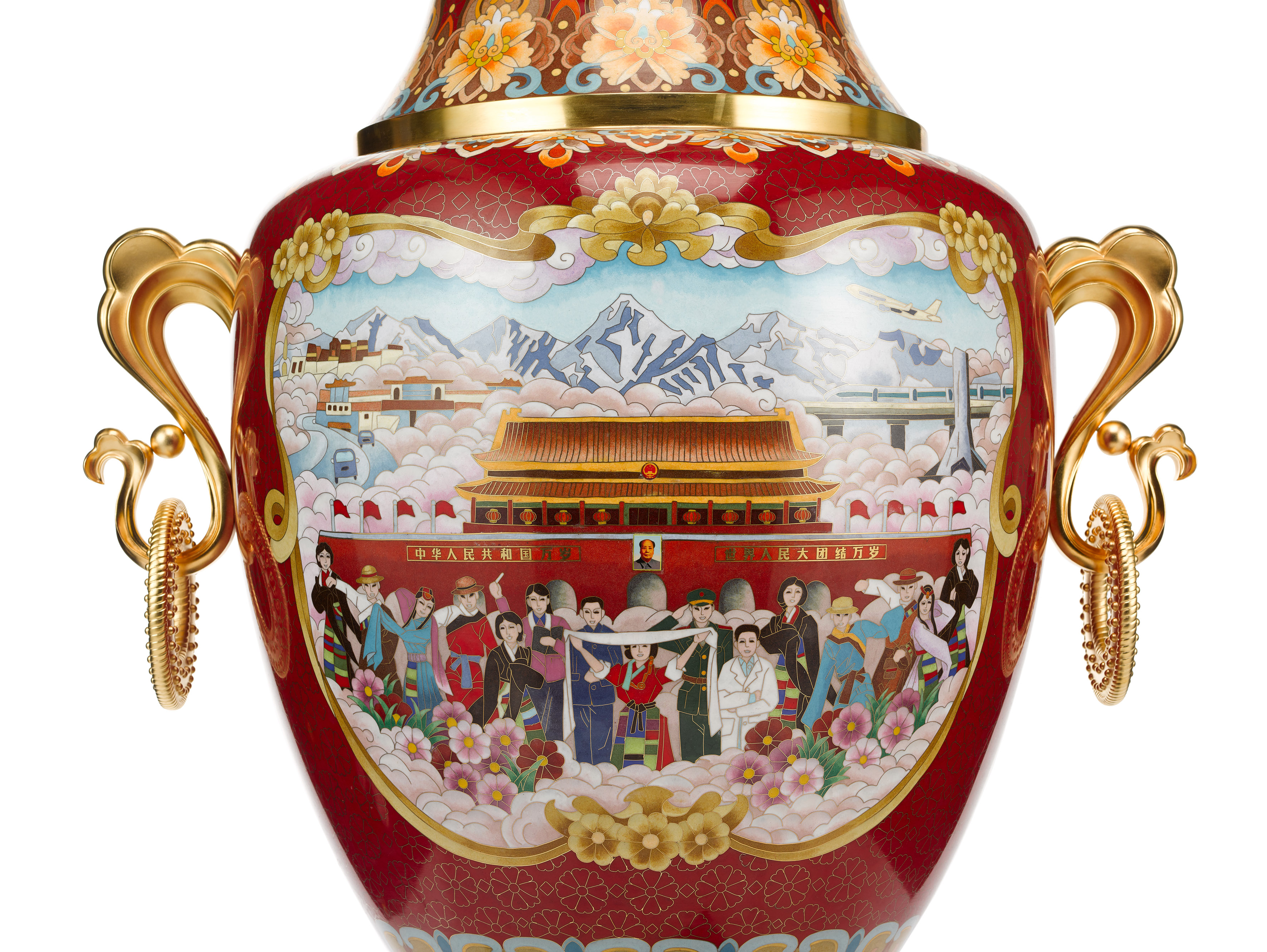 《珐琅器》由北京市珐琅厂有限责任公司制作完成,采用北京传统工艺美术的代表工艺、“燕京八绝”之一的景泰蓝工艺为主体,结合浮雕和錾刻工艺制作完成,是一件体现中国深厚传统文化的礼物载体,体现了党中央对西藏的关怀。
