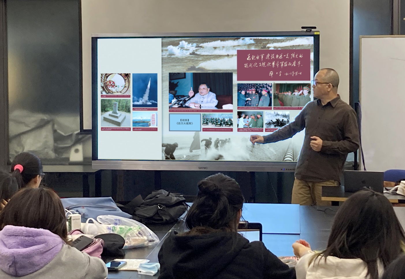 陈磊带领研究生重点讨论邓小平关于强军内容的版式设计。团队紧紧围绕1987年邓小平参观“中国人民解放军新时期建设成就展览”时的题词进行设计,将题词手书“为把我军建设成为一支强大的现代化正规化革命军队而奋斗”放在关键位置,这既是邓小平长期以来对军队建设的实践总结,同时也为新时期军队建设设定了发展目标。以下为布展展示的内容,主要回顾了从1978年十一届三中全会到2012年党的第十八次代表大会召开的重要场景。