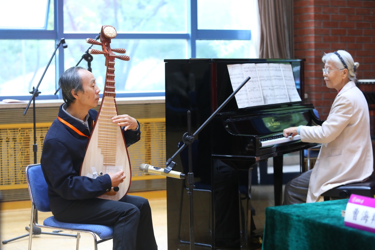 80岁寿星、微电子所杨肇敏老师与同伴现场为大家演奏了钢琴、琵琶协奏曲《梁祝》,离退休教职工京剧队孙秀英等演唱了京剧版《唱支山歌给党听》,荷韵诗社王伯雄、王东光朗诵了专门为活动创作的诗词作品,校学生艺术团合唱团的同学们表演了混声合唱《在希望的田野上》,现场还摆放了校老年书画研究会会员书写的贺寿对联等书法作品,表达了对老同志们的敬意和祝福。