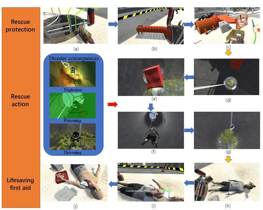 该获奖作品聚焦公共安全领域的有限空间救援演练系统。根据应急管理部统计数据显示,有限空间事故中伤亡人员超过60%是救援人员,这暴露出该领域应急安全教育的严重不足。针对这个问题,作品将虚拟现实结合严肃游戏制作了一套有限空间救援演练系统,包含了专业救援的标准化流程、灾害事故链推演等内容,提供了具备专业性和沉浸感的有限空间救援演练教程,并邀请有限空间作业者和普通工作者对作品进行测试实验。实验证明,相对于传统的课件培训方式,这款作品可大大提高培训效率,提升参与者的有限空间救援知识和技能。