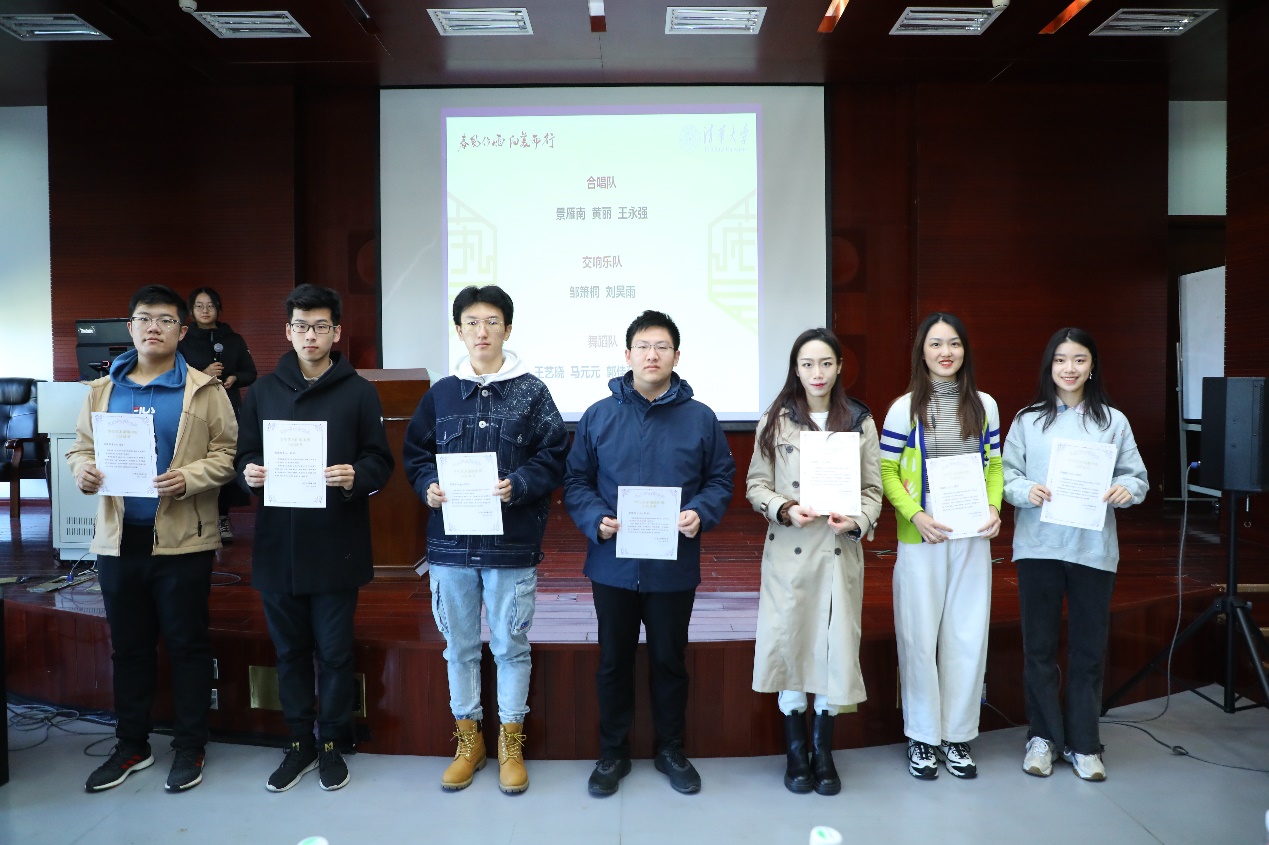 舞蹈队指导教师邢高熙作为指导教师代表讲话。他回忆了十余年前带队参加庆祝中华人民共和国成立60周年大型音乐舞蹈史诗《复兴之路》的经历,鼓励同学们“在事上练”,将清华精神的火种发扬光大,在时代浪潮中留下清华身影。
