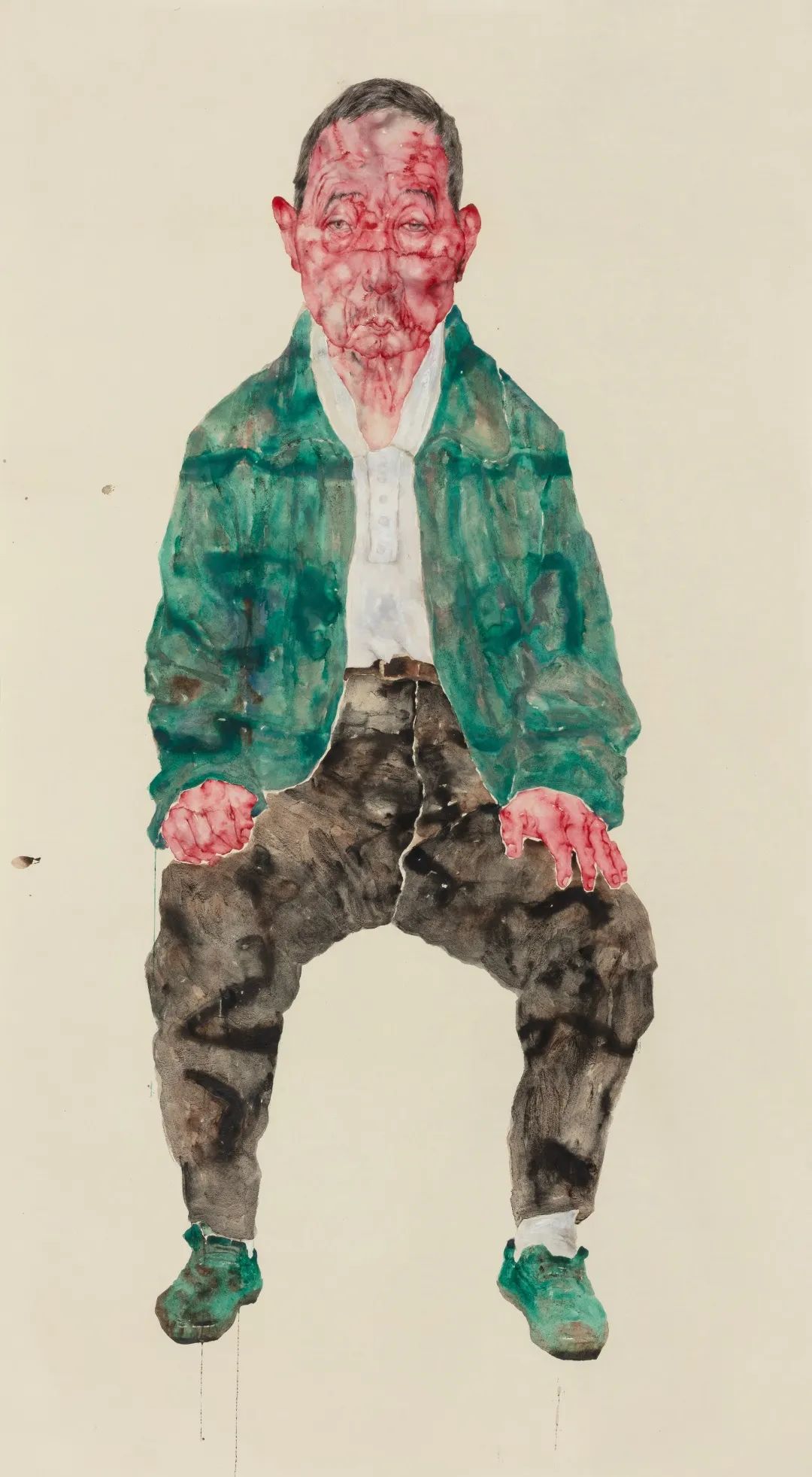 丁荭的作品宛如一首凡人颂歌。她将目光转向了我们身边的普通人,采用了朴素直白的题目,如《大姐》《大哥》《绿马甲》《孙子》和《绿鞋红脸老大爷》,他们平凡无奇,终日为生存奔波忙碌,但他们同样蓬勃而富有生命力。