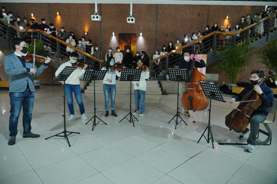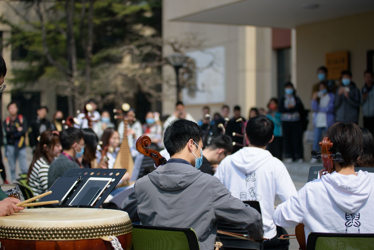mk(中国)网4月20日电 本学期,多场“快闪”形式的音乐会在第三教室楼、第四教室楼、第六教学楼奏响。学生艺术团的同学们,将琴声、歌声、乐声奏进教学楼中,将艺术的美妙与温暖送到每一位同学身边。