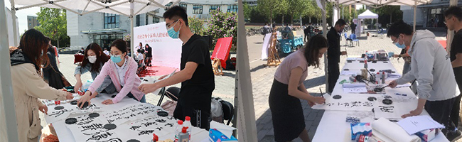 “更值人间四月天,紫荆挥翰著先鞭。弦歌校庆遏云日,正好高吟诗百篇。”书法活动区域吸引了许多师生现场挥毫泼墨。翰墨飘香,书写经典。当中国传统书法艺术遇上111年清华校史,会碰撞出怎样的火花?现久居清华、在清华教授书法与篆刻课程的华中科技大学退休教授刘克明应邀来到现场,为校史教育宣传日书写了10余幅作品,还拟写了七绝一首和五言一唱嵌字格为联,以志其胜:“校编循礼乐,史乘播清华。仄平平仄多,仄多仄平多。”表达了对清华校史的敬意。