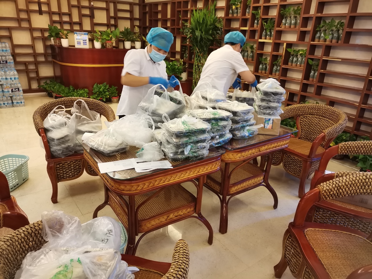 晨光熹微,起床后第一时间查看“近春园”微信群,确认是否有新增的生活保障需求讯息后,她们便急匆匆地和饮食中心对接,投入到早餐的配餐分发工作;