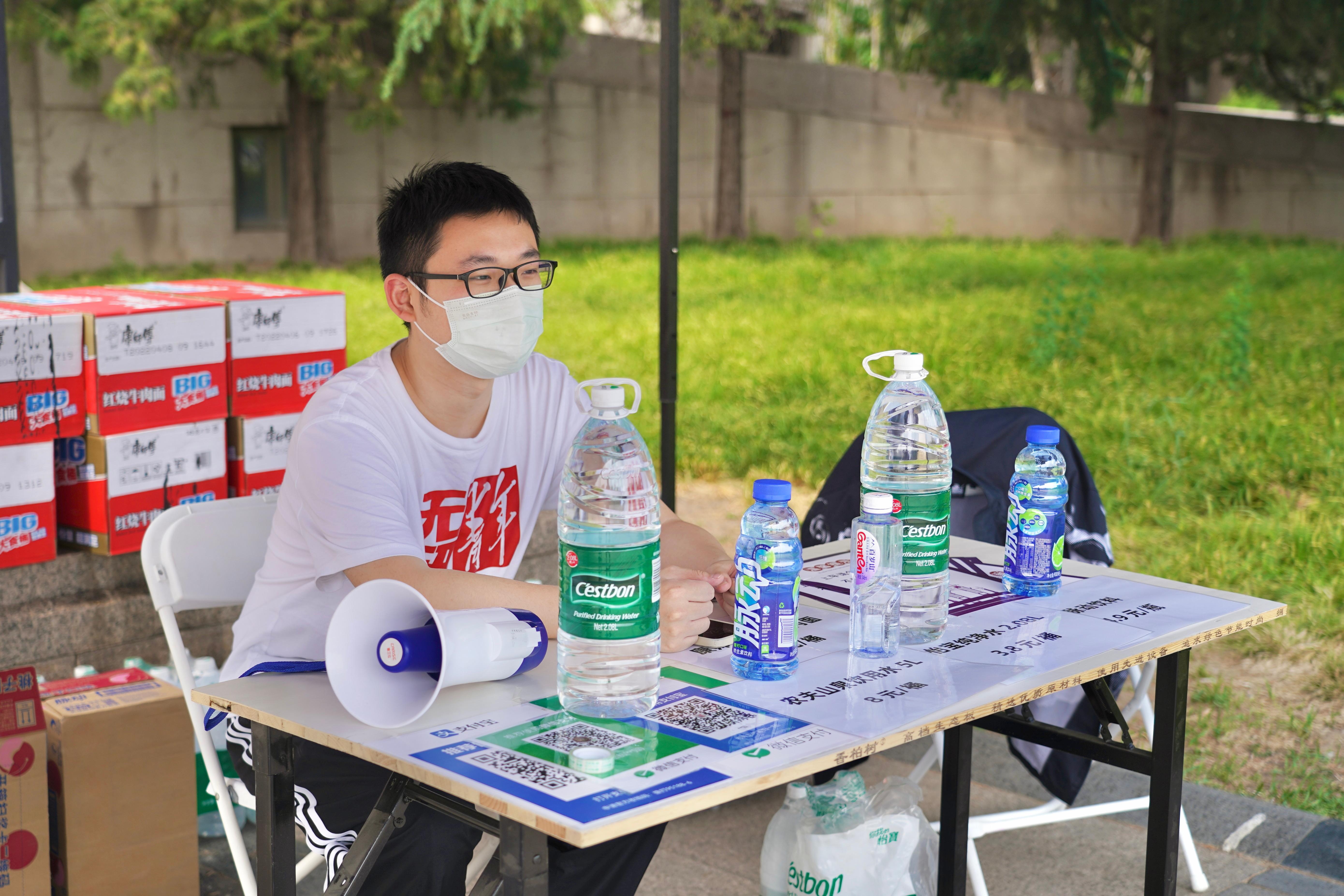 疫情管控升级后,居住在双清公寓的同学们只能通过专车通勤入校。无研211党支部书记刘波在个人报名参与过班车引导志愿者工作后,得知目前该岗位还亟需更多志愿者,立即向所在支部发出号召,15名党员和积极分子随即在支部微信群中接龙报名参与。从早上9点到晚上11点半,支部在主楼前乘车点接力齐上阵,一边要负责好引导乘车,一边还要关注第一天“营业”的主楼清青供水站的“生意”,登记物资、做好记录、仔细交接、更新信息,随时提醒补货,来来回回、毫不停歇。校车轰鸣声中,微信群也不断进行信息轰炸,大家井然有序:点货、引导、登记、辅助购买……在帐篷和校车间,奔忙着同学们的身影,展现的是电子青年的有为与担当。