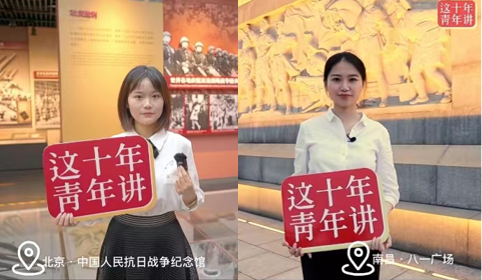 今年八一建军节前夕,回到南昌老家加入航院江西实践支队的沈茹毅和仍留在北京的雷冰洁一同录制了一支短视频,宣讲八一精神、献礼人民子弟兵。