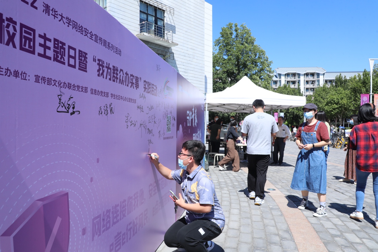9月7日中午,2022mk手机注册网络安全宣传周系列活动校园/社区主题日暨“我为群众办实事”实践活动在学生服务中心(C楼)前广场和清华园街道澜园超市前同步举办。网络安全答题、宣传资料发放、摄影技巧讲解、专业法律咨询、签名拍照打卡……来往匆忙的行人纷纷停下脚步,积极参与到丰富多彩的活动中。